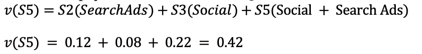 | Search + Email + Social | v(S4) – v(S2) = 0,11 | v(S7 ) – v(S4) = 0,67 | v(S2) = 0,12 |